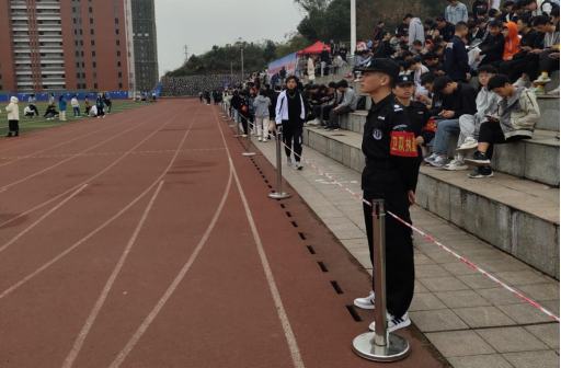 学院第八届运动会期间,校卫队员每天上午7:20前到岗到位,认真落实运动会现场门禁管理、维护运动会场内外秩序,疏导疏散运动场观众席拥堵人员,迅速救护运动竞技中受伤的的同学,有效的维护了运动会期间的秩序,校卫队员发挥了积极作用,圆满的完成了运动会安保执勤工作。(文/图 李静)