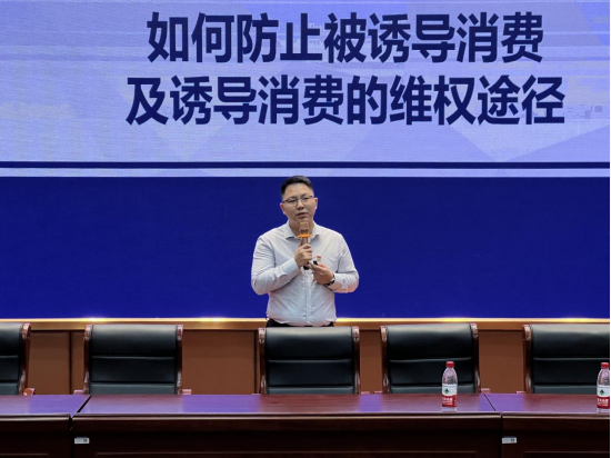活动中,于永亮开展题为“如何防止被诱导消费及诱导消费的维权途径”的宣讲。“去理发店托尼老师给染了个天价发型怎么办?”“团购网上宣传图是西施,进店后发现是东施。”他以丰富的法律经验、诙谐幽默的语言,通过分析身边真实案例,结合《民法典》诠释,列举了低价套路型、虚假宣传型等生活中常见的诱导消费情形,并从恐惧心理、从众心理等八个方面简析消费者上当的心理成因。随后从固定证据、协商和解、12315投诉等多个途径为大家遇到“诱导消费”情形时支招。讲座的最后,于永亮还普及了《消费者权益保护法》相关条文,提示大家遇到问题时应当拿起法律武器捍卫自身合法权益。