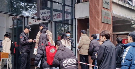 考试期间,学院保卫部制定了2024年单招考试安保工作方案及应急预案,组织安保人员培训,将参与单招考试的75名安保工作人员分为7组,按照定岗、定人、定责的原则,强化了门禁管理、交通安全管理、考场秩序维护、校园秩序维护、保密阅卷值班、监控室值班备勤和应急处置等工作。