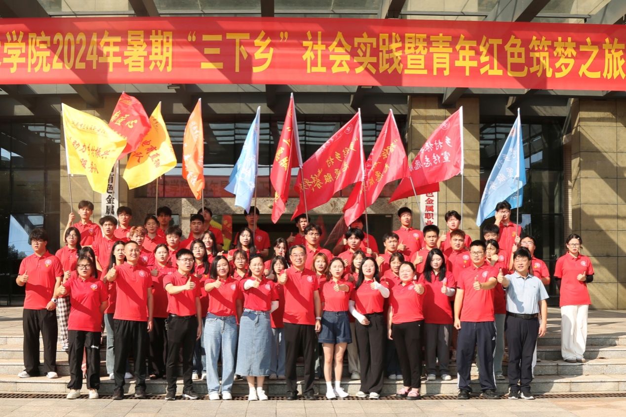 为充分发挥在校大学生在乡村振兴中的生力军作用,引导广大青年学子走进社会、深入基层,在社会课堂中“受教育、长才干、作贡献”。近日,学院在综合楼前坪举行学院2024年大学生暑期“三下乡”社会实践暨青年红色筑梦之旅活动出征仪式。学院党委书记许国强出席并向志愿服务队授予队旗,活动指导老师及各学生志愿服务队代表60余人参加。