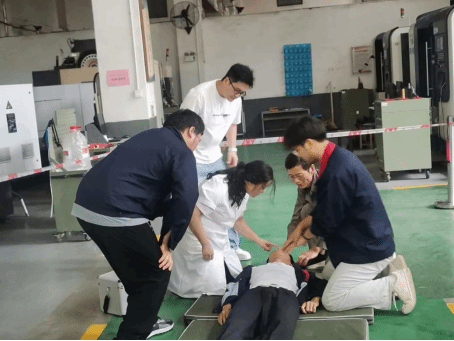 紧接着,触电伤害事故演练拉开帷幕。学生模拟工作人员,在维修数控车床电气故障时不幸触电昏迷。发现后,现场人员立即切断电源,并向老师呼救。老师确认学生情况后立即拨打医务电话,同时拉起警戒线,防止二次事故的发生。医护人员抵达现场,组织医疗急救,触电者逐渐恢复意识,成功获救。