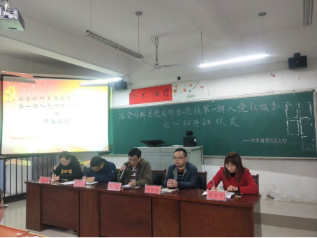 4月3日,冶金材料系党支部分党校第一期入党积极分子培训班开班仪式在3513教室隆重举行。学院党委副书记、纪委书记何子明,冶金材料系党支部副书记胡卓民,冶金材料系主任邱智海,冶金材料系党支部宣传委员贾菁华,冶金材料系党支部组织委员吕娜出席本次开班仪式。会议由党支部副书记胡卓民主持。