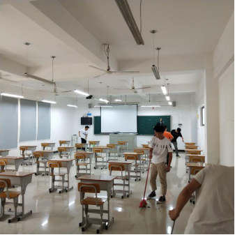 教室是学生学习和生活最重要的场所。优雅的教室环境能够营造良好的学习氛围,提高学生学习热情。我系5间公共教室因使用人数多、流动性大,卫生状况不佳,教师和学生在教室内上课时缺乏幸福感。鉴于此我系21名入党积极分子自发利用午休时间,自带卫生工具,分工明确,互帮互助,将桌面、地面、窗台、讲台、墙壁、风扇、灯管等所有区域彻底清扫,打扫过的教室窗明几净。