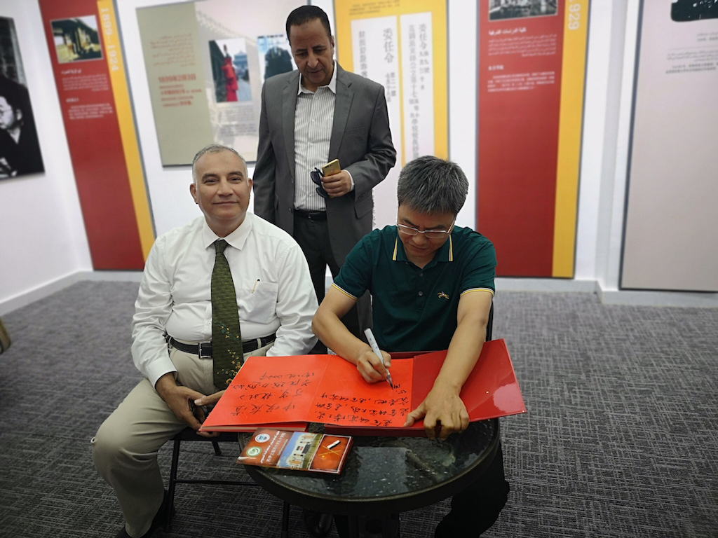 出访埃及期间,谭骁彧院长一行先后访问埃及苏伊士运河大学孔子学院、埃中应用技术学院,受到了两所院校的热情接待。在苏伊士运河大学孔子学院,代表团先后参观了郭沫若、老舍展览馆,与院长Hassan博士座谈,了解孔子学院汉语教学情况,并就埃及学生来华学习、应用型人才培养等项目进行了合作洽谈,达成了合作共识。在埃中应用技术学院,代表团与该校相关负责人座谈,详细了解了该校的专业设置、教学管理及模式、教学质量标准等情况。埃中应用技术学院由中埃两国共同建设、三方合作运营,执行北京信息职业技术学院提供的职业教育标准,该校的运营模式对我院建设好赞比亚分院具有重要的参考价值。