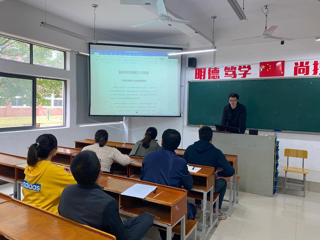 在建党100周年之际,地质采矿党支部第三次党课学习于10月26日下午在资环楼3108教室正式开课。此次党课以“实现民族复兴的重要里程碑”为主题,会议由党支部书记沈德顺主讲,各支部成员参会。