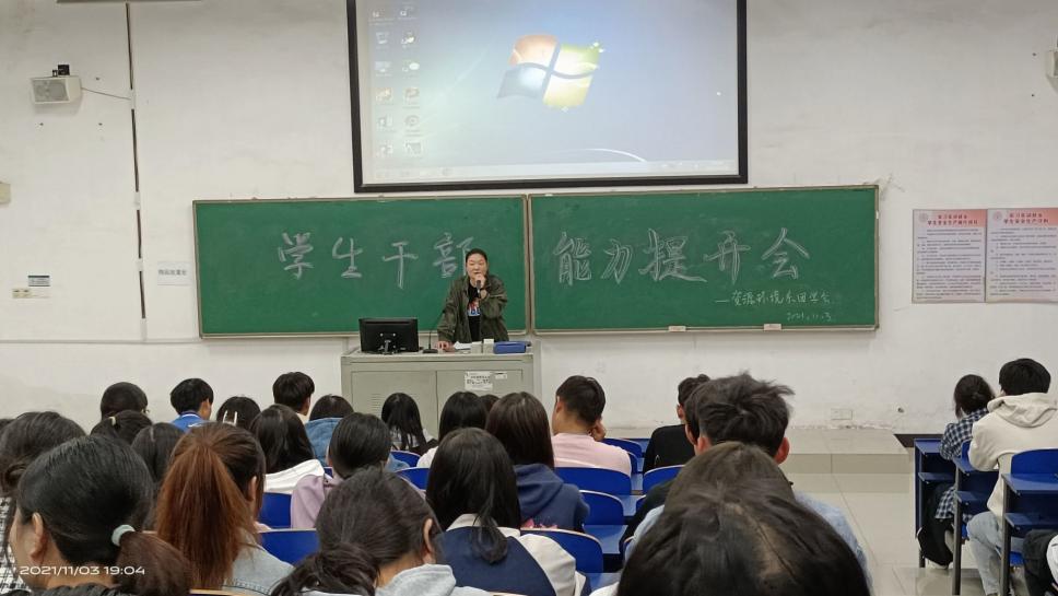 在接下来的培训会中,丁葛老师集合自身的经验分享了一些的工作方法和提升自己的学习软件,他还表示,一个学生干部的能力关键体现在对于突发事件的处理,处理手段、方法、效率如何,能充分反应一个人的工作能力。朱利娜老师提出,学生干部是班级与老师的桥梁纽带,应当精确自己的学生定位和职责,正确处理好与他人之间的关系且坚决抵制官僚主义,也为此希望各位学生干部做到“以德为本,正人先正己”,成为一个高政治思想高基本素养的人。其他参与培训的老师,也围绕不同的主题依次给大家进行了指导和专题培训。