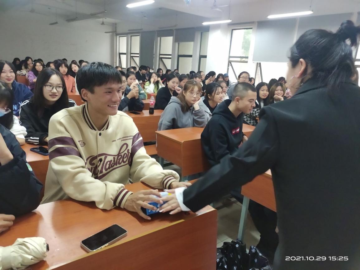 (团总支学生副书记林雨萱颁发纪念品)