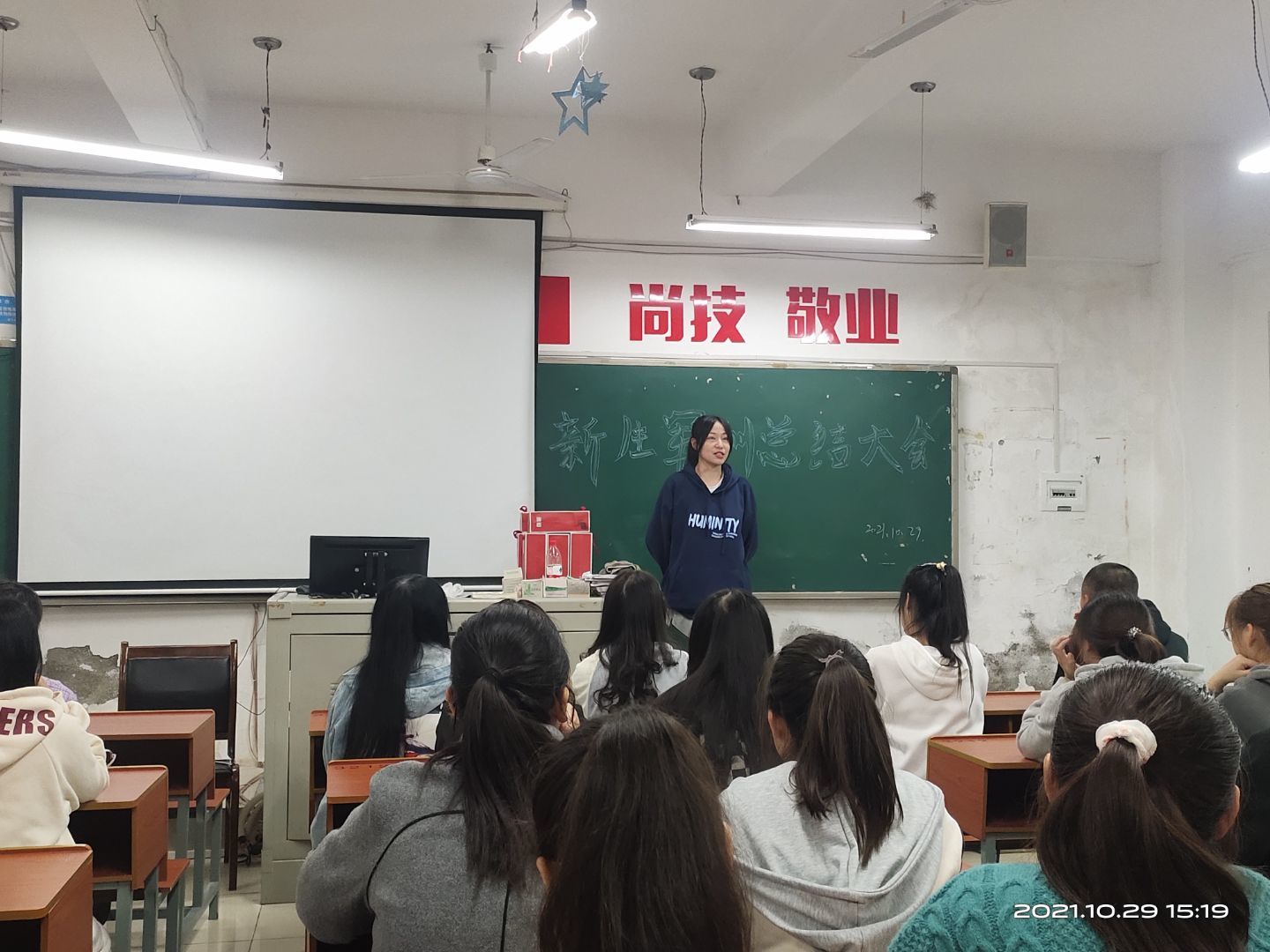 10月29日下午,资源环境系在3212教室举行了2021级新生军训总结表彰大会,本次参会成员有我系辅导员老师、新生班助及拔河与合唱参赛队部分同学,会议由系团总支书记刘和俊老师主持。