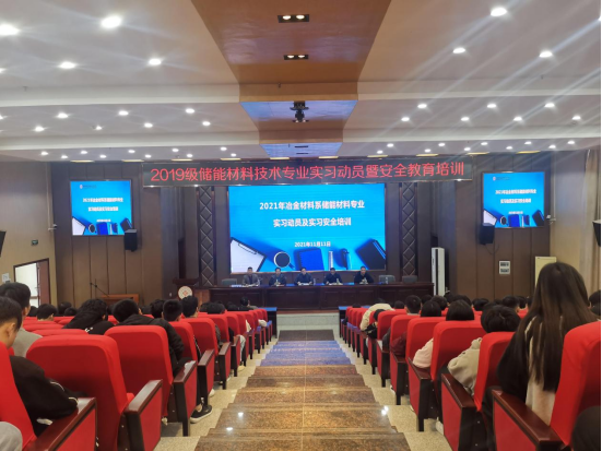 11月11日下午15点,冶金材料系在学院学术报告厅召开2019级储能材料技术专业实习动员暨安全教育培训会。教务处处长陆柏林,学工处处长李彪,冶金材料系党总支副书记梁方,冶金材料系学工主任何军应邀出席,会议由系部教学主任唐守层主持,全体2019级储能班学生参加会议。