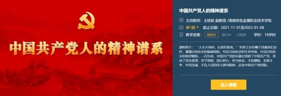 解码中国共产党人的精神谱系,传承红色基因,赓续精神血脉。由湖南有色金属职业技术学院马克思主义学院打造的《中国共产党人的精神谱系》慕课,于2021年11月1日正式上线。