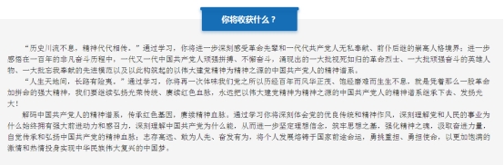 首批慕课于2021年11月1日在学银在线学习平台正式上线,向建党100周年献礼,并组织全院学生以选择性必修课形式开展线上学习。同时,课程也将面向全国高校师生和社会学习者开放。