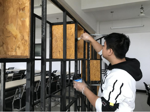 蒋骞(第三期义工)表示,经过两个星期的“刷墙漆”工作,自己已经基本掌握了技术要领,算是学会了一门手艺,待自家老房子翻新,可以不用请工了。10月份,蒋骞还主动承担了冶金材料系成长辅导室的书架刷油漆工作。