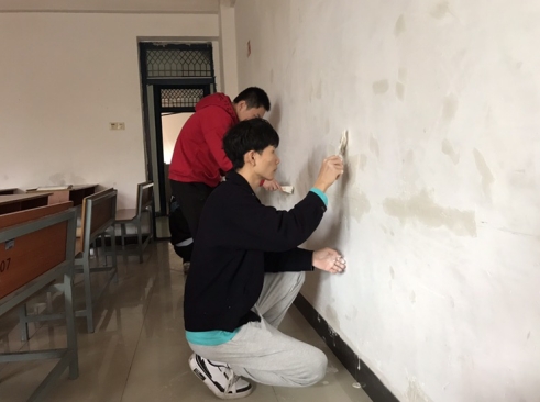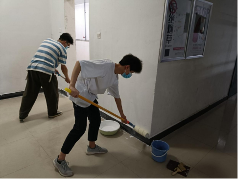 冶金2101班的义工们更积极,代领全班同学自行采购墙漆、滚筒、刷子、铲刀、砂纸等一系列工具,历时三天给原本老旧的晚自习教室彻底翻新了一遍,如今的4302晚自习教室洁白透亮如新。