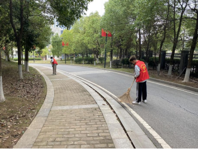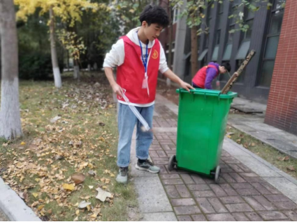 活动开始,志愿服务队负责人隆伊凡分发卫生工具,明确分工。志愿者们到各自的责任区用扫帚把一些易于清理的纸屑,落叶、烟头和食品包装袋清扫完毕。虽然“汗水与尘土齐飞”,但是同学们脸上都洋溢着快乐的微笑,他们在劳动中深刻体会奉献精神的永恒和伟大。经过一个多小时的辛勤劳动,校园一角的环境变得整齐有序。