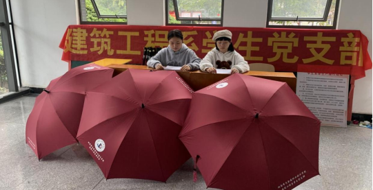据悉,建筑工程系学生党支部联合团总支学生会在校园里开展了“小红伞志愿服务活动”,在教学楼、办公室设立了“小红伞志愿服务点”,免费为全校广大师生提供雨伞志愿服务,让大家在下雨天也能感受到温暖。