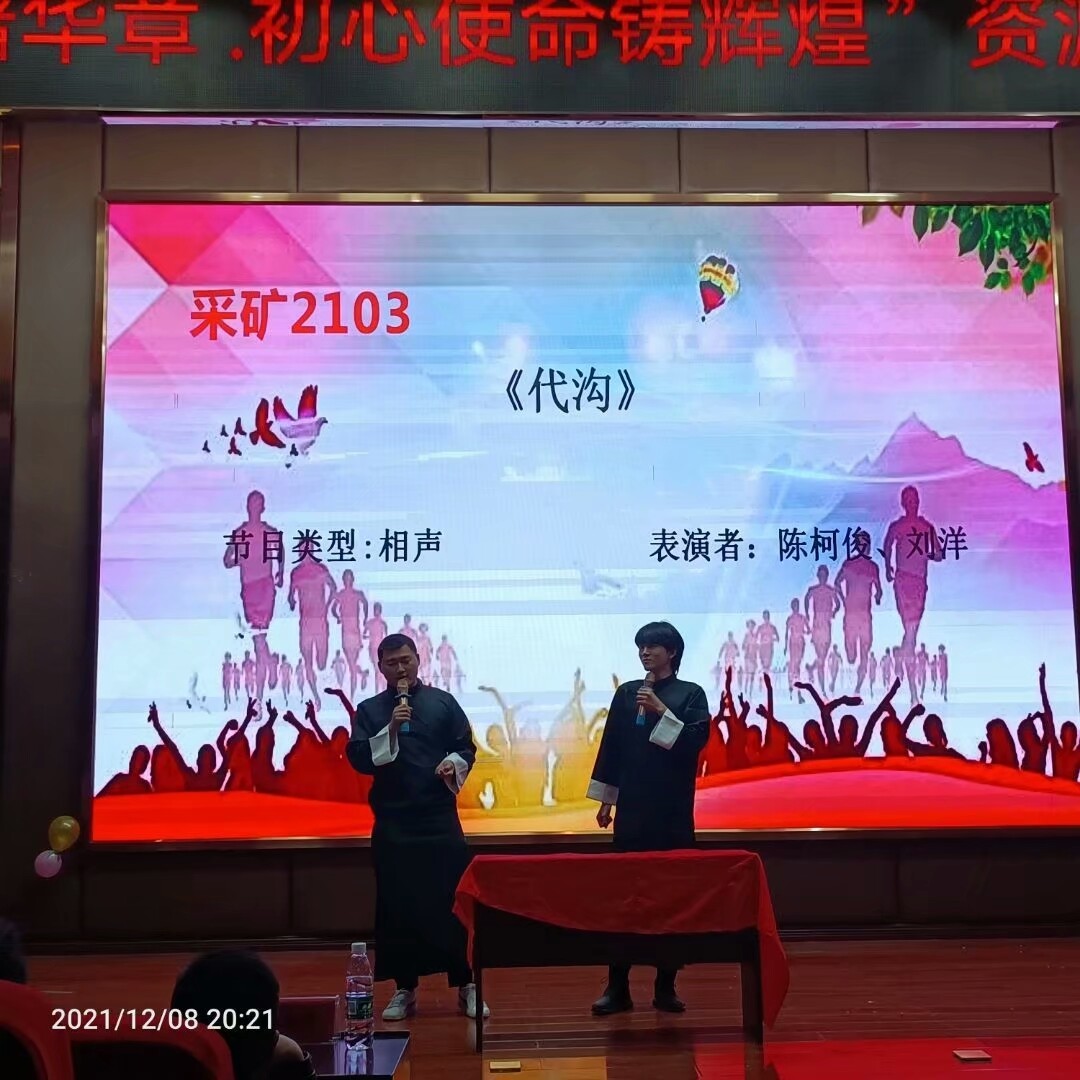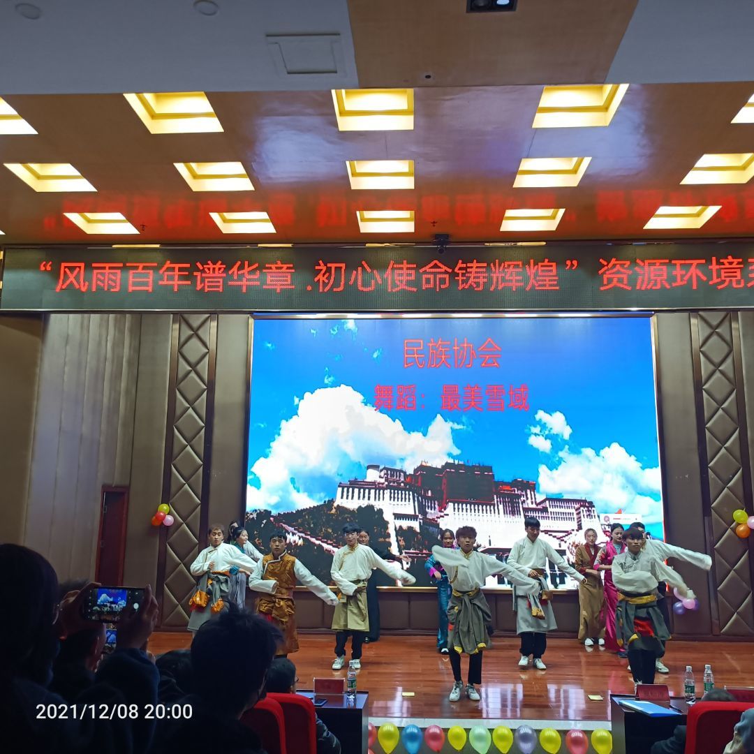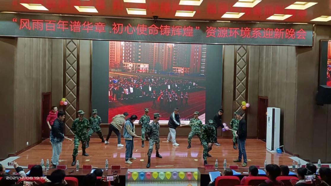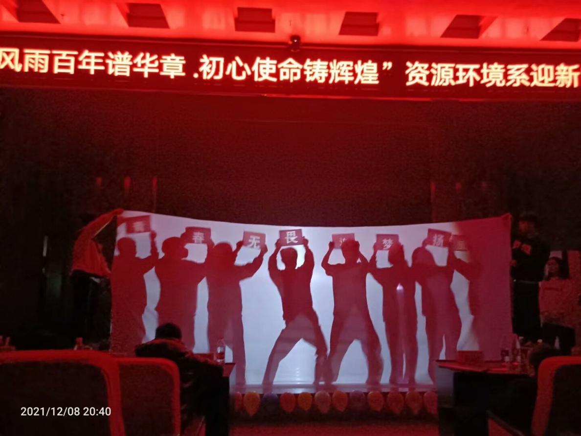 为更好为学生搭建才艺展示的平台,并迎接2021级新生的到来,展现大学生积极向上、生气活泼的精神风貌,展现资源环境系学子风采,12月8日晚七点,由我系主办的“风雨百年谱华章,初心使命铸辉煌”迎新晚会在我校学术报告厅隆重举行。莅临本场晚会观看的嘉宾有资源环境系主任夏松涛、学工处副处长马云志、资源环境系团总支书记刘和俊、机电系团总支书记蒋芙蓉、建筑工程系团总支负责人樊明民、资源环境系全体辅导员、学院其它部门领导老师和院团委、院学生会、院社团联合会主要学生干部以及各系团学会主要学生干部。