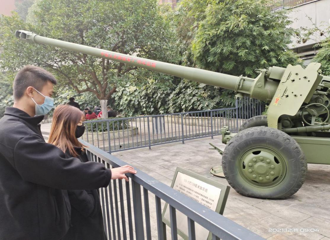 (志愿者们参观各式重型武器)