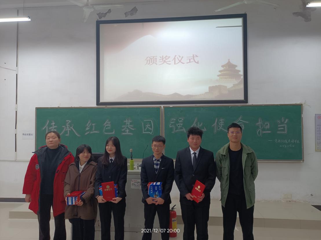 为培养同学们的爱国意识与使命担当,弘扬社会主义核心价值观,把红色文化引进校园、走进课堂、进入大学生的心灵,用红色文化引领学生健康成长,充分锻炼学生们的演讲能力和口头表达能力,给大家提供一个展现自我,提升自我的机会和舞台,资源环境系学生党支部会同系学生会学习部在3116教室举办了以“传承红色基因,强化使命担当”为主题的演讲比赛。