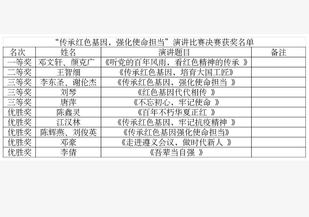 通过这次演讲比赛,激励着同学们传承和发扬我党我军在长期斗争中形成的艰苦奋斗、不惧牺牲、自强不息的优良传统,承担起我们时代的历史使命,秉承先烈之意志,高举红色之火炬,继往开来,走前辈们没有的路,走我们这代人特有的路。(图/文:刘和俊、邓婷、何超群/唐瑶、潘佳峰、李瑶琳)