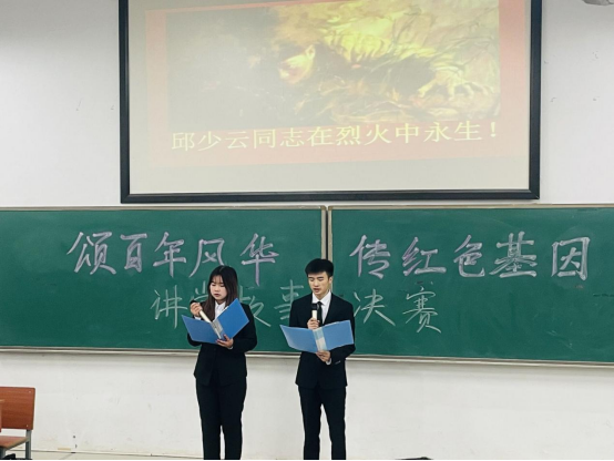 比赛中,参赛选手紧扣红色主题,深情并茂、绘声绘色地讲述了革命先辈赵一曼、夏明翰、焦裕禄、黄继光、陈道望等人的故事,让现场聆听的评委和同学们仿佛进入了血雨腥风、艰难困苦的年代,重现了革命先辈为了实现民族独立和民族复兴前赴后继、不畏牺牲的感人故事,为现场的观众带来了一场深刻的精神洗礼。