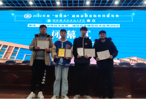 在12月29日-31日举办的2022年度“楚怡杯”湖南省职业院校技能竞赛高职建筑信息模型技术(BIM)赛项中,我院建筑工程系选派的参赛队伍在全省117名选手参赛脱颖而出,其中张子扬同学取得了一等奖第4名的喜人成绩,实现了学院竞赛的重大突破。