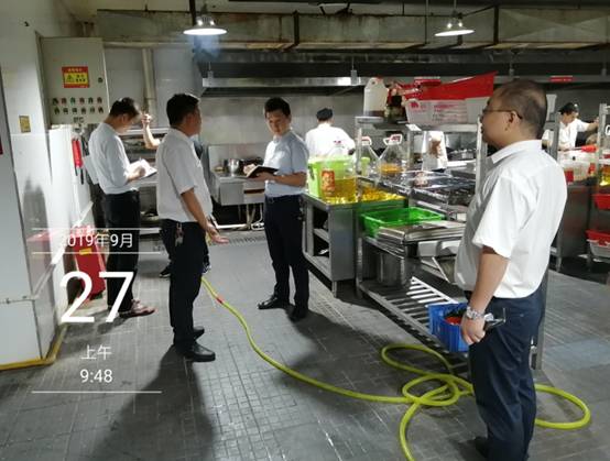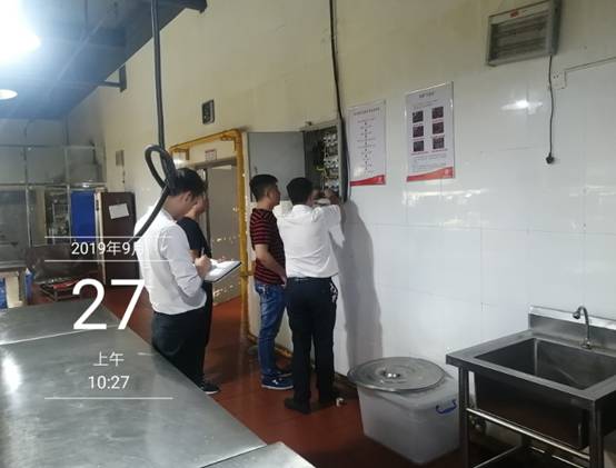 根据9月26日召开的安全稳定后勤工作会议要求,在9月27日上午9点40分,后勤处戴艾副处长带领后勤食堂管理人员、水电负责人对各食堂、商铺的食品卫生及用电安全逐个区域进行了全面检查。对各食堂、商铺在检查中突出的问题进行了汇总共计20项。其中涉及食堂食品卫生安全及用电安全方面17项。涉及商铺食品卫生安全及用电安全方面3项。通过本次突击检查发现的问题作出了相应的部署,要求各食堂、各商铺在检查中出现的问题逐条进行整改。整改期限为期5天。并强调安全隐患无小事,查出一项整改一项把安全风险控制在“0”范围。
