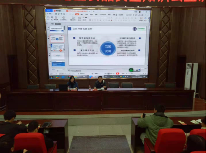 易局长从原料采购、加工制作、备餐、供餐与配送等多个方面重点讲解。列举了近段时间出现的食品卫生安全相关案例。结合自己平时检查时发现的问题逐步提醒,强调食品安全的重要性。