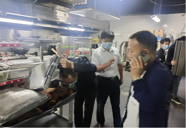检查组先后来到了各食堂的售卖间、操作间、储藏室及商铺,检查食堂设施设备的保洁、食材品质、食品和餐具的保管储存、餐具的清洗等方面是否有问题,检查商铺是否售卖烟酒、刀具等学院规定的违禁品,食品是否过期变质,把发现的问题当场通报给食堂负责人或商铺经营者。