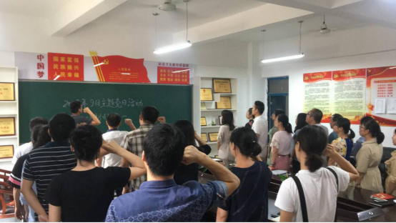 本次主题党日活动通报了一季度党费交纳情况、重温了入党誓词、全体党员朗诵《党章七、八章节》、组织学习了《关于学习贯彻习近平总书记给中央美术学院老教授重要回信精神的通知》、《习近平总书记在全国教育大会的讲话》、《关于加强新时代高校院(系)党的组织建设的指导意见》、观看影片《不忘初心继续前进》,民主议事及主题讨论环节,广大党员踊跃发言,现场气氛热烈。