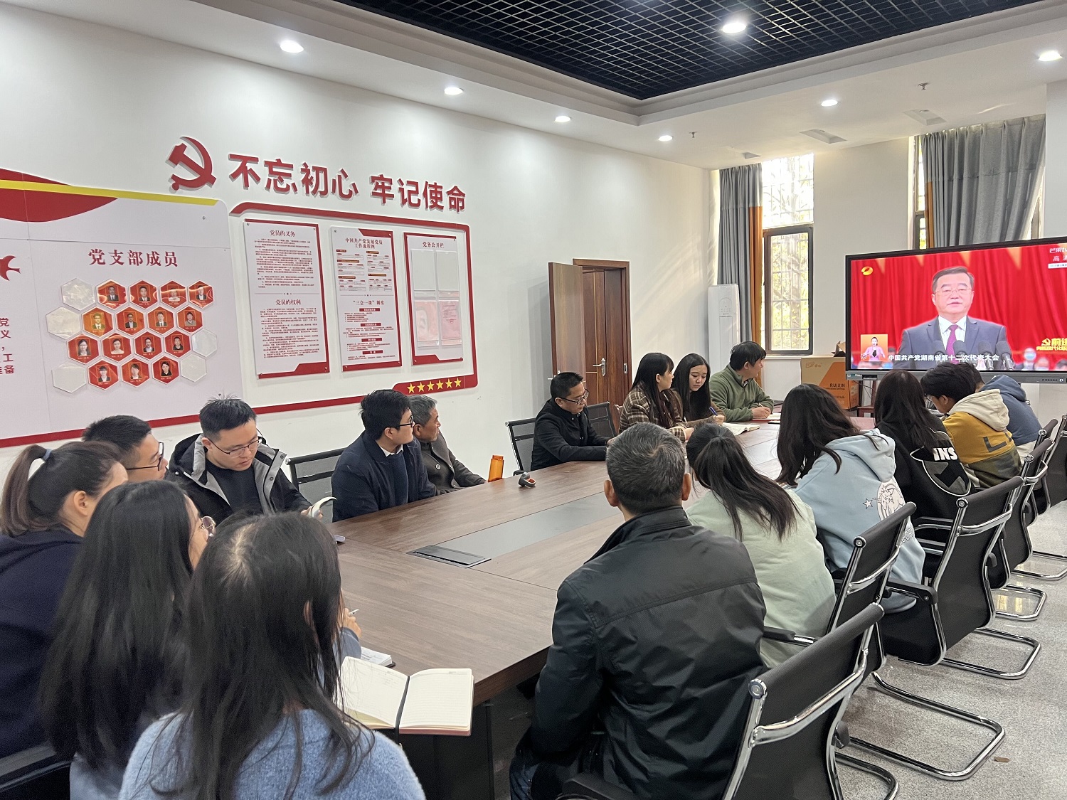 2021年11月25日上午,中国共产党湖南省第十二次代表大会在省人民会堂隆重开幕,学院机关第二党支部组织全体成员在学工处会议室观看学习。