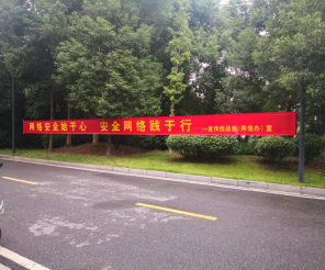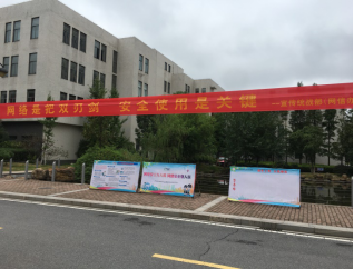 教学楼前、图书馆、人工湖主要路口悬挂网络安全宣传横幅以及摆放展板