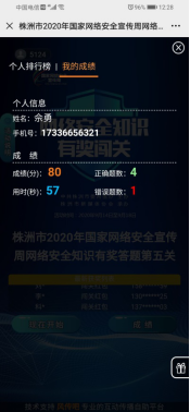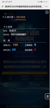 学院老师参加株洲市委网信办的“网络安全知识有奖闯关”知识竞赛